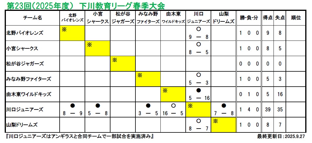 ※下川杯及び下川教育リーグ閉会式は平成29年2月11日(土)10時~予定